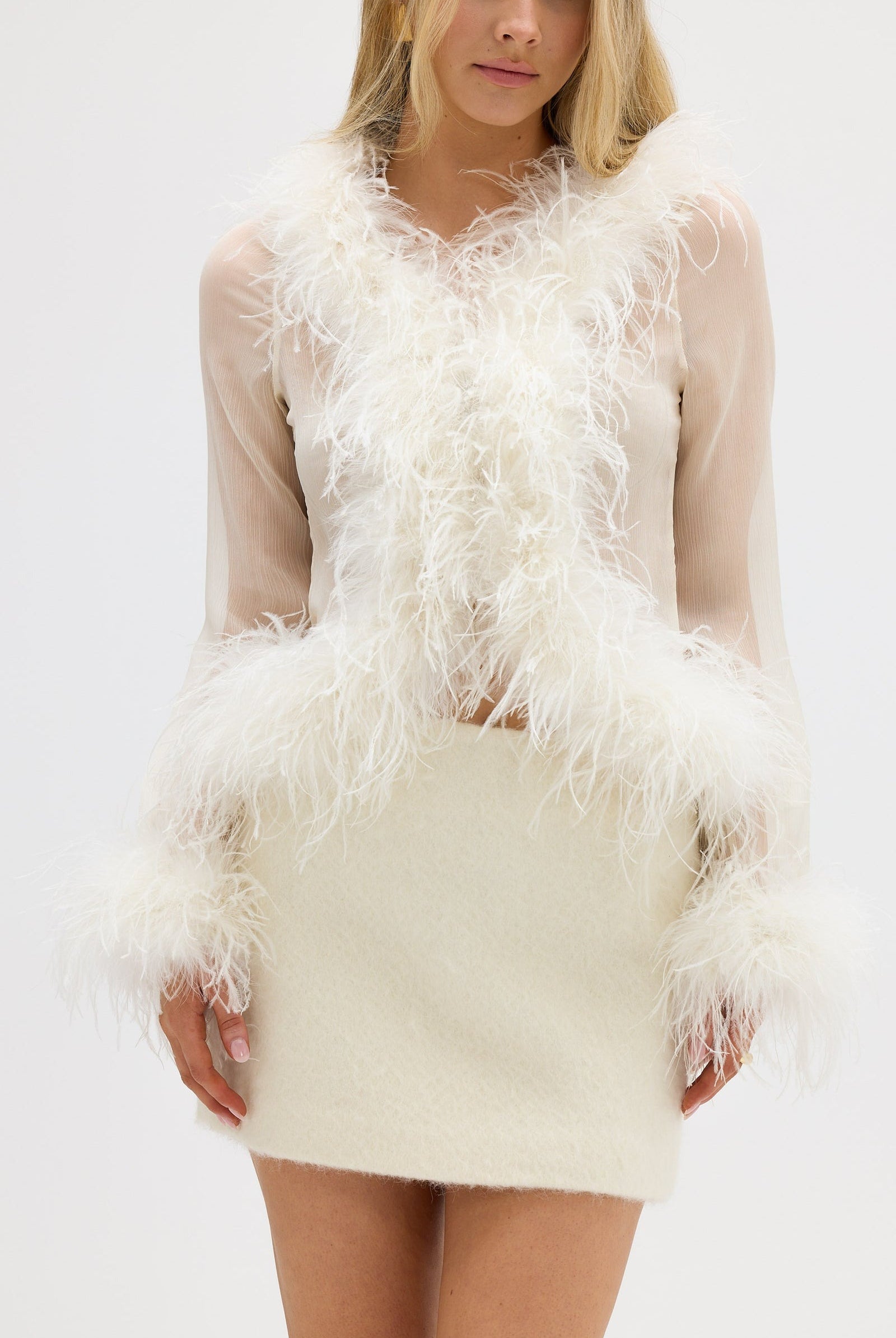 Proudly sourced from ethical suppliers who follow guidelines set by the International Fur Federation, our Fur & Feather is crafted from surplus by-products. Due to their delicate nature, please dry clean only.
