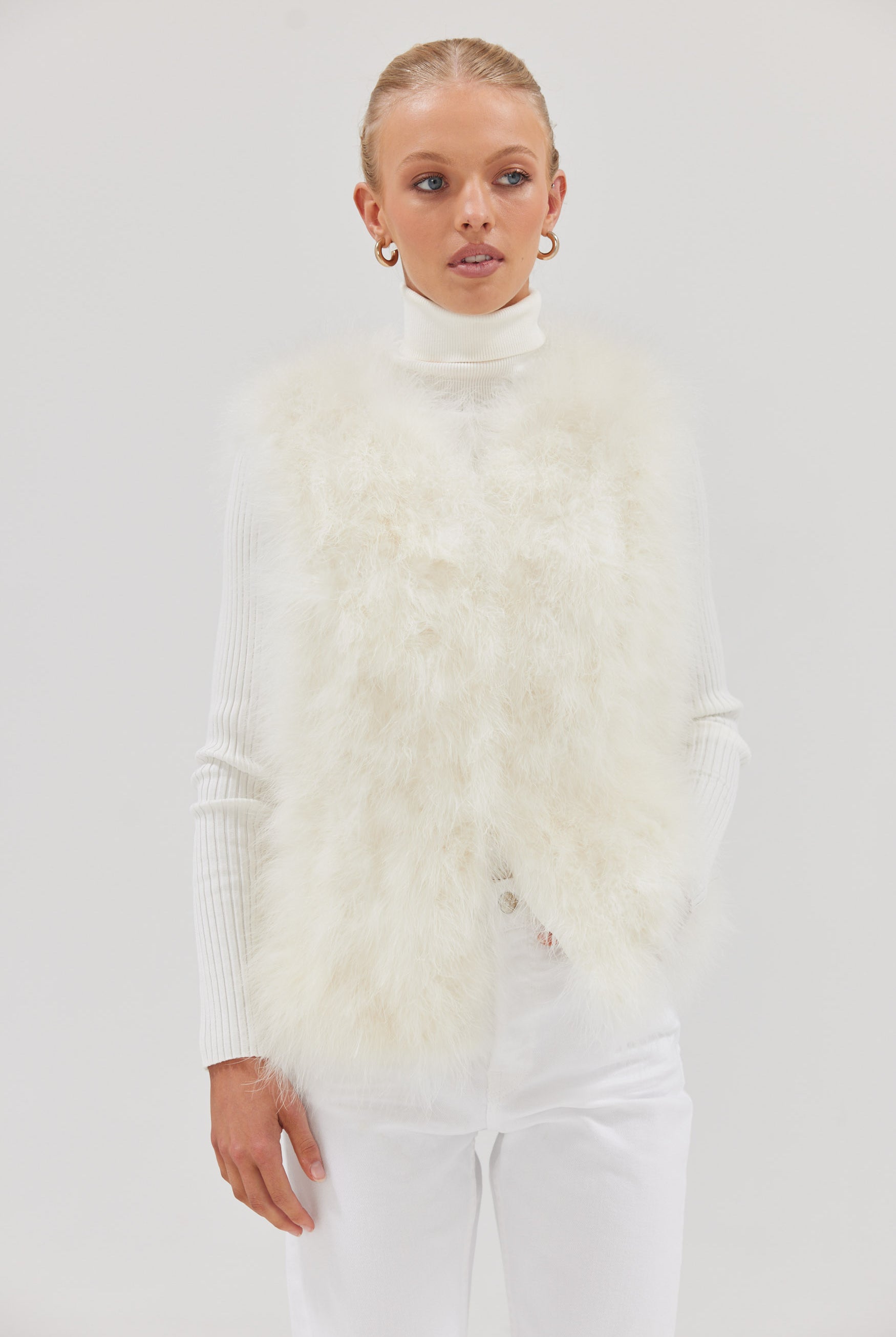 Proudly sourced from ethical suppliers who follow guidelines set by the International Fur Federation, our Fur & Feather is crafted from surplus by-products. Due to their delicate nature, please dry clean only.
