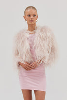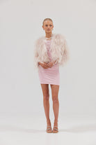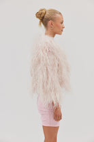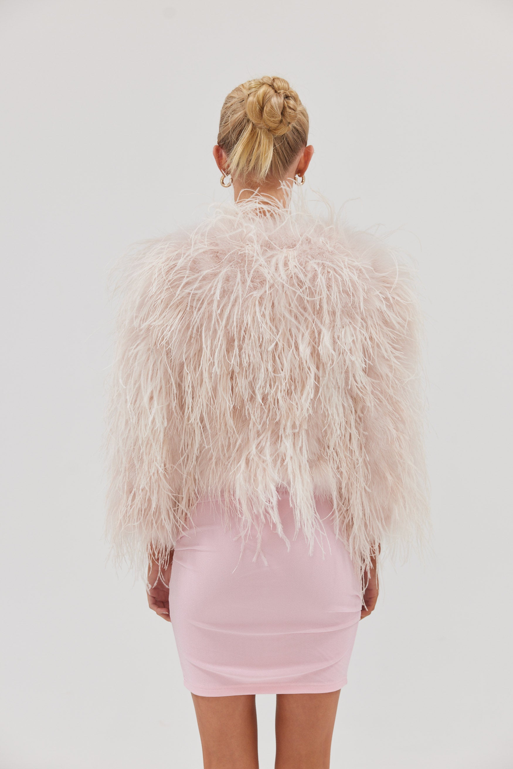 The Dahlia Feather Jacket has been a favourite year after year. Handmade with whimsical Ostrich Feather this cropped sleeve jacket is the most perfect piece for your wedding guest outfit or special occasion.