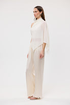 The Hailey Cowl Neck Top is an elegant take on modern occasion dressing. Cut in a soft, fluid fabrication, it features a draped cowl neckline, halter-style silhouette and gathered side detailing that ties into a cascading sash. Cropped at the waist for a flattering finish, it’s the kind of piece that feels both effortless and elevated.