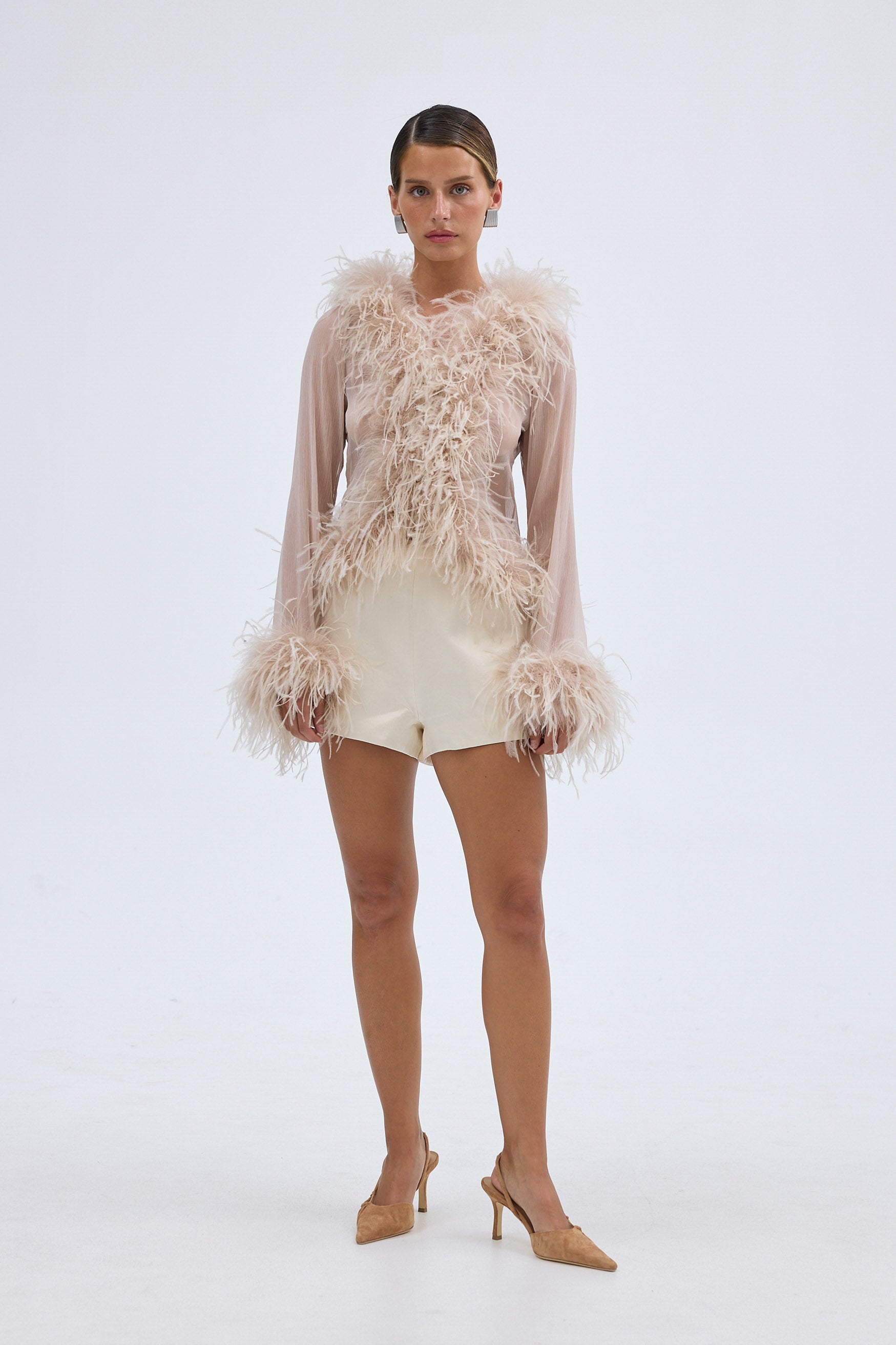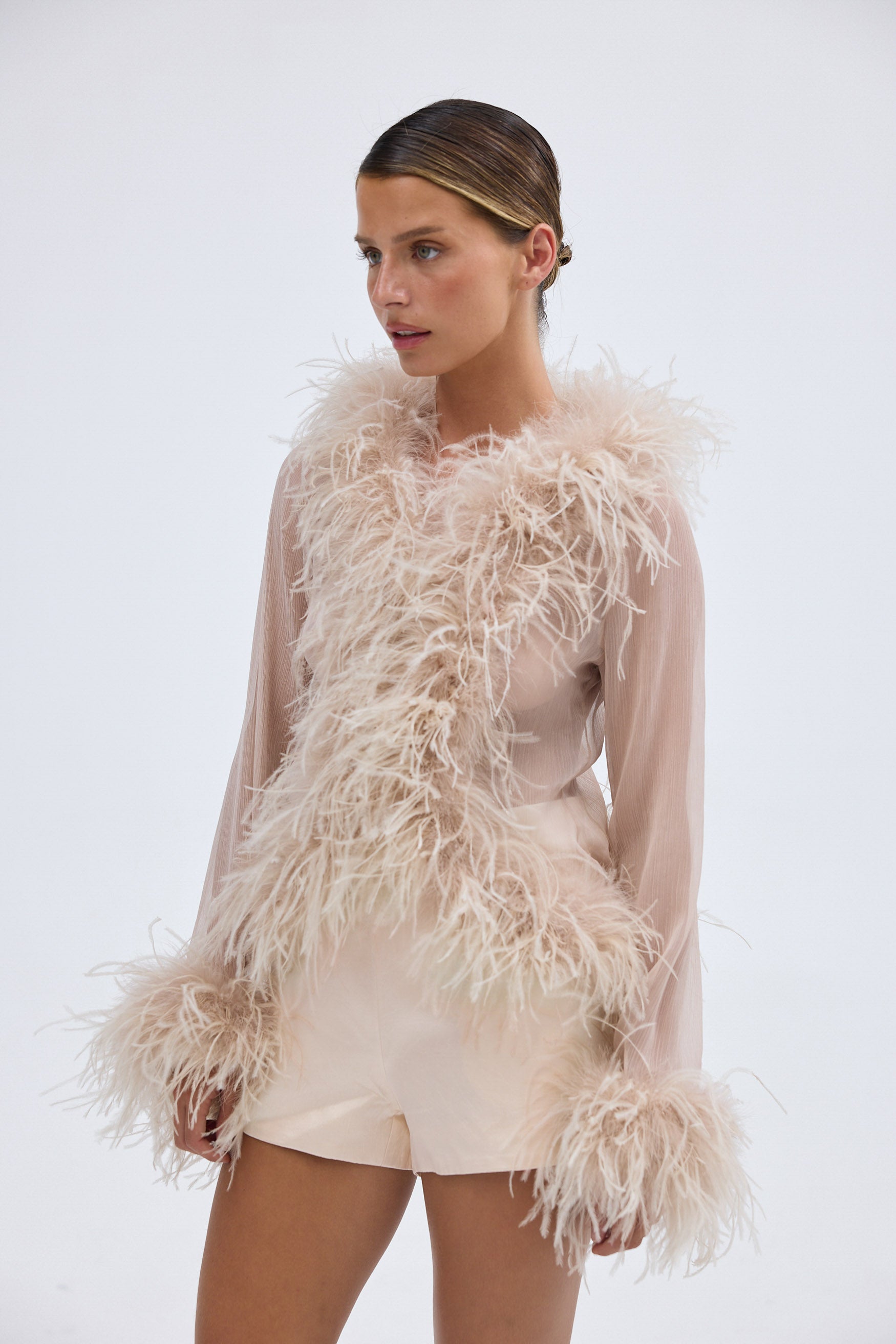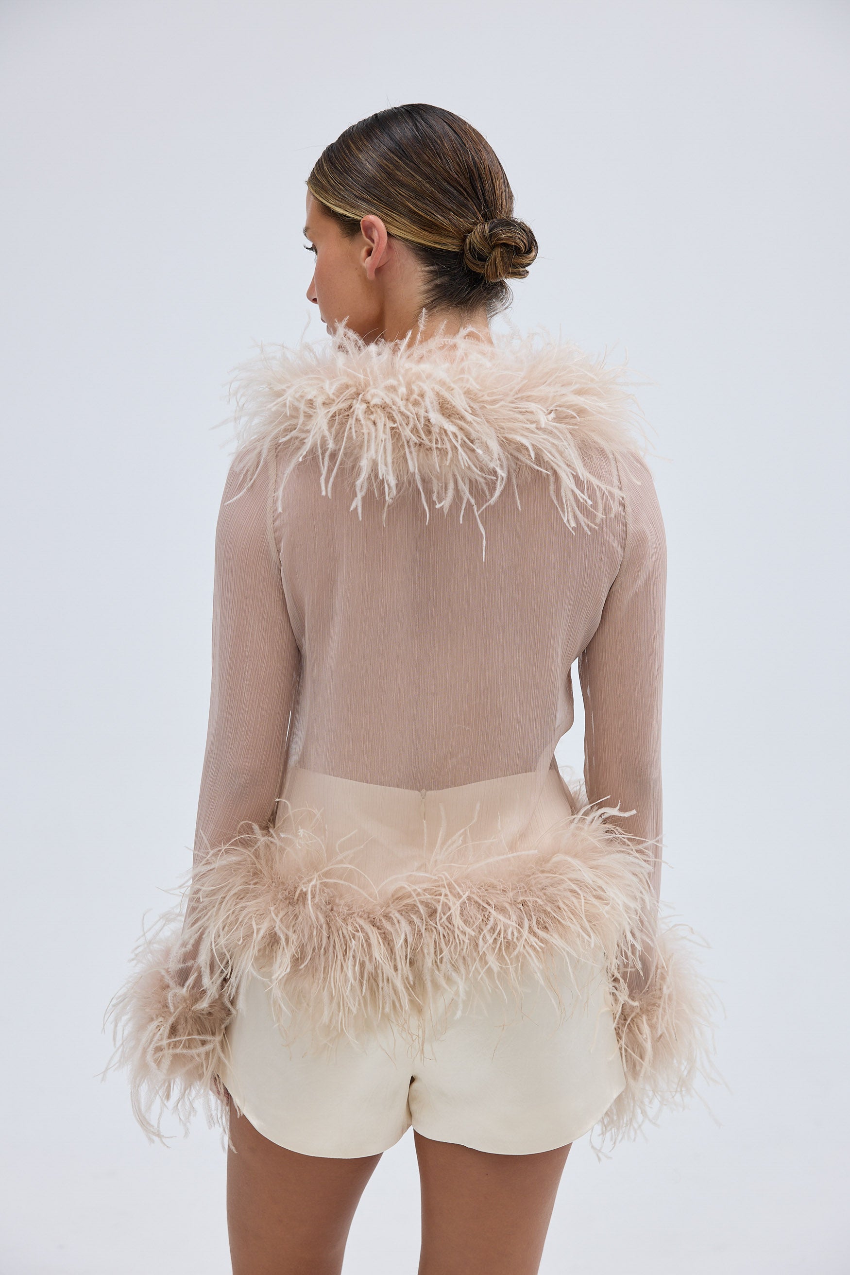Gigi Sheer Feather Blouse - Ivory